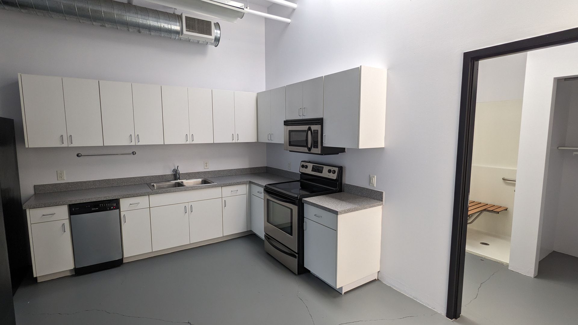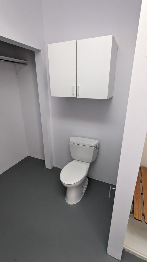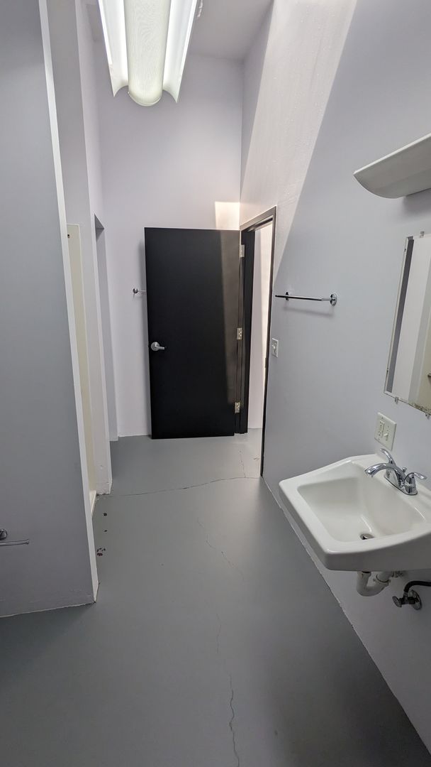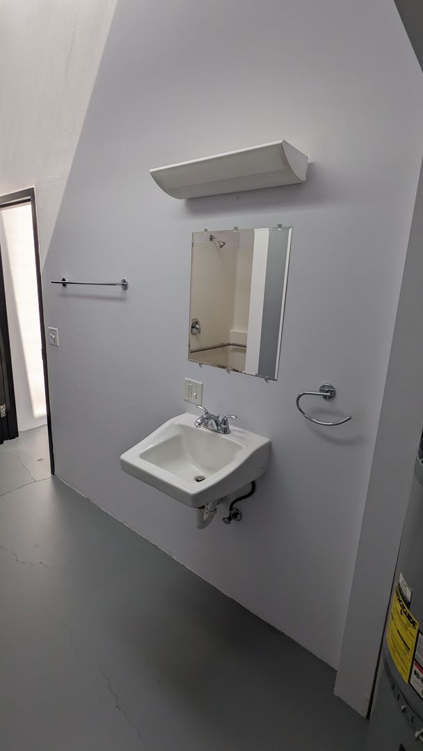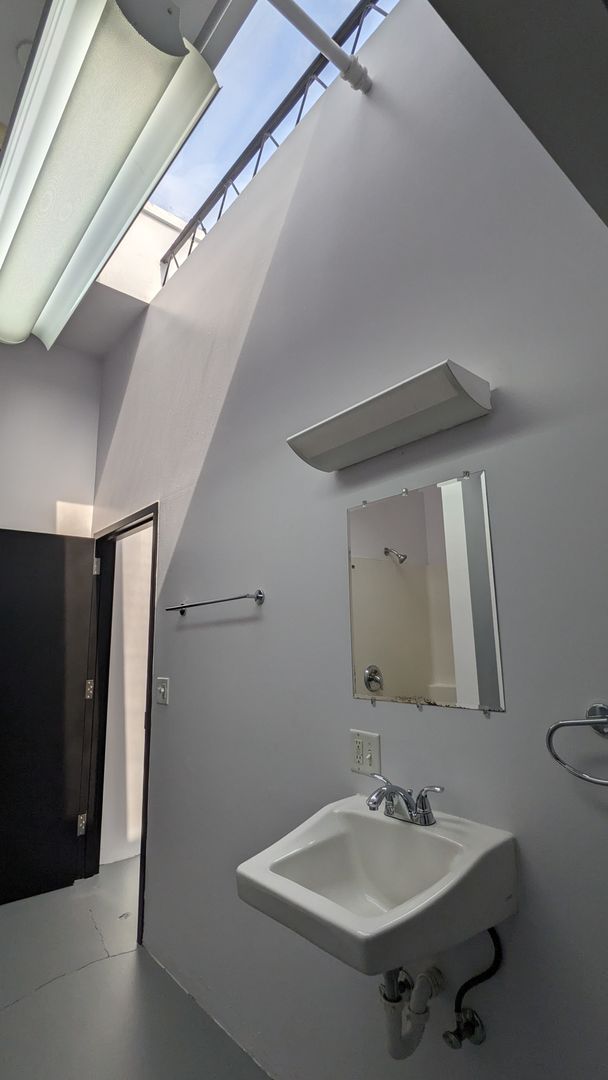 Welcome to the Salem Arts Building, a top-floor penthouse studio located in Salem, OR. This unique space boasts a generous living area with 12-foot vaulted ceilings and a skylight, bathing the apartment in natural light. The studio is equipped with a full bathroom featuring an ADA stand-up shower and ample bathroom storage.