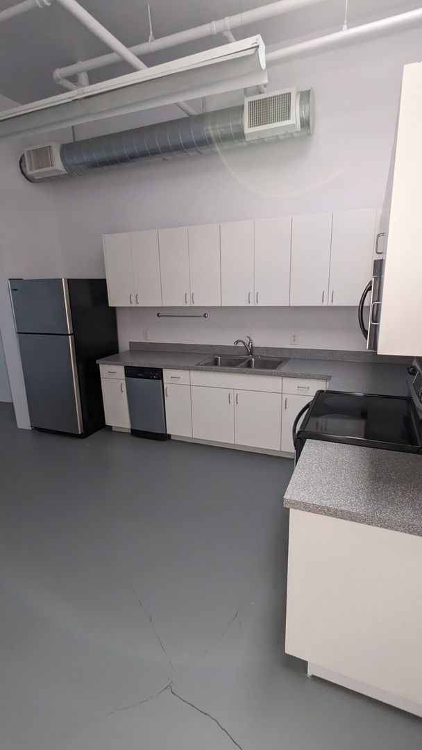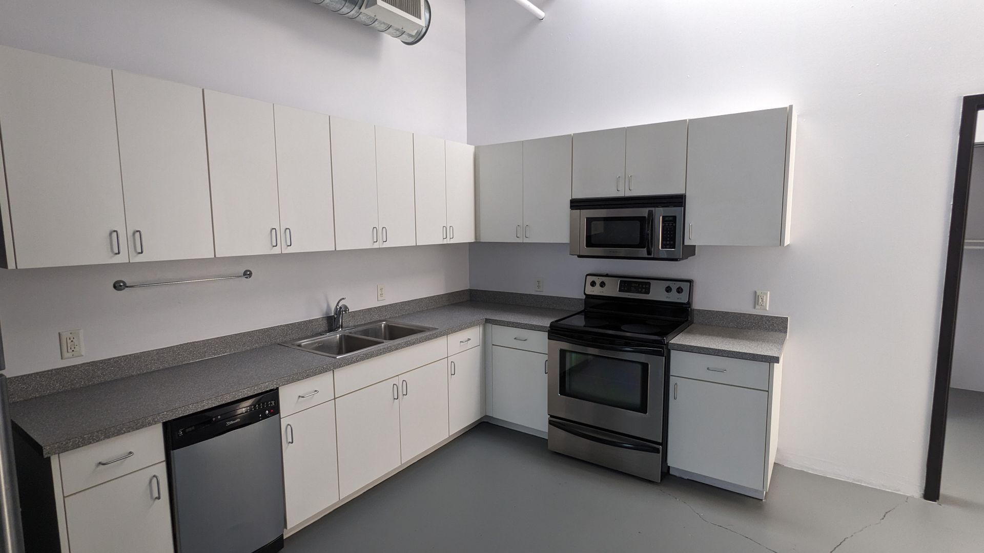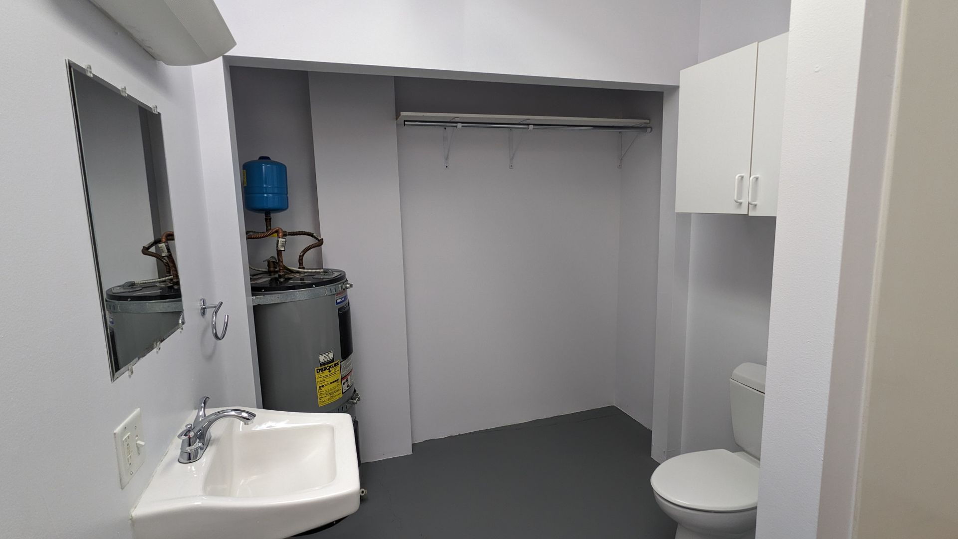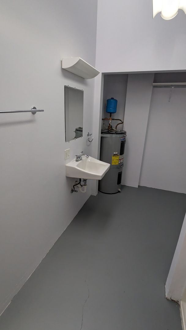 Welcome to the Salem Arts Building, a top-floor penthouse studio located in Salem, OR. This unique space boasts a generous living area with 12-foot vaulted ceilings and a skylight, bathing the apartment in natural light. The studio is equipped with a full bathroom featuring an ADA stand-up shower and ample bathroom storage.