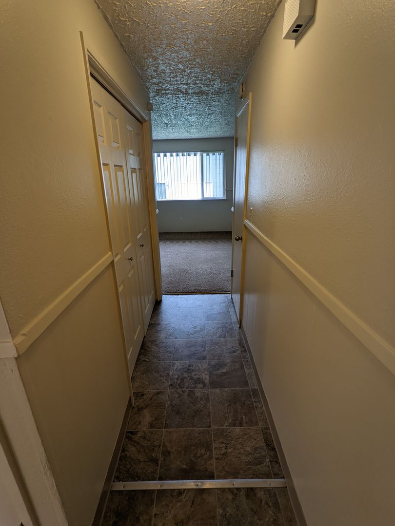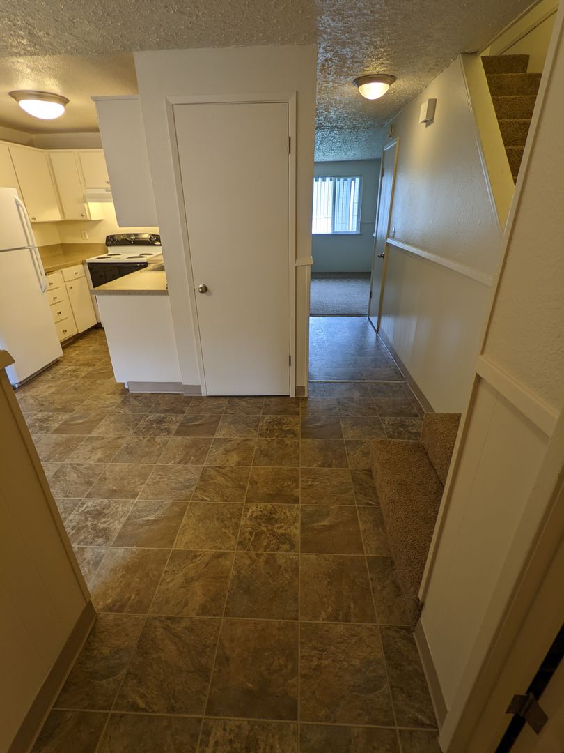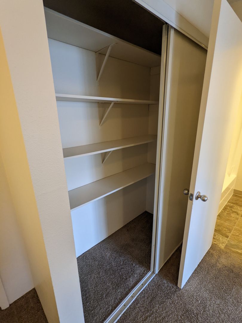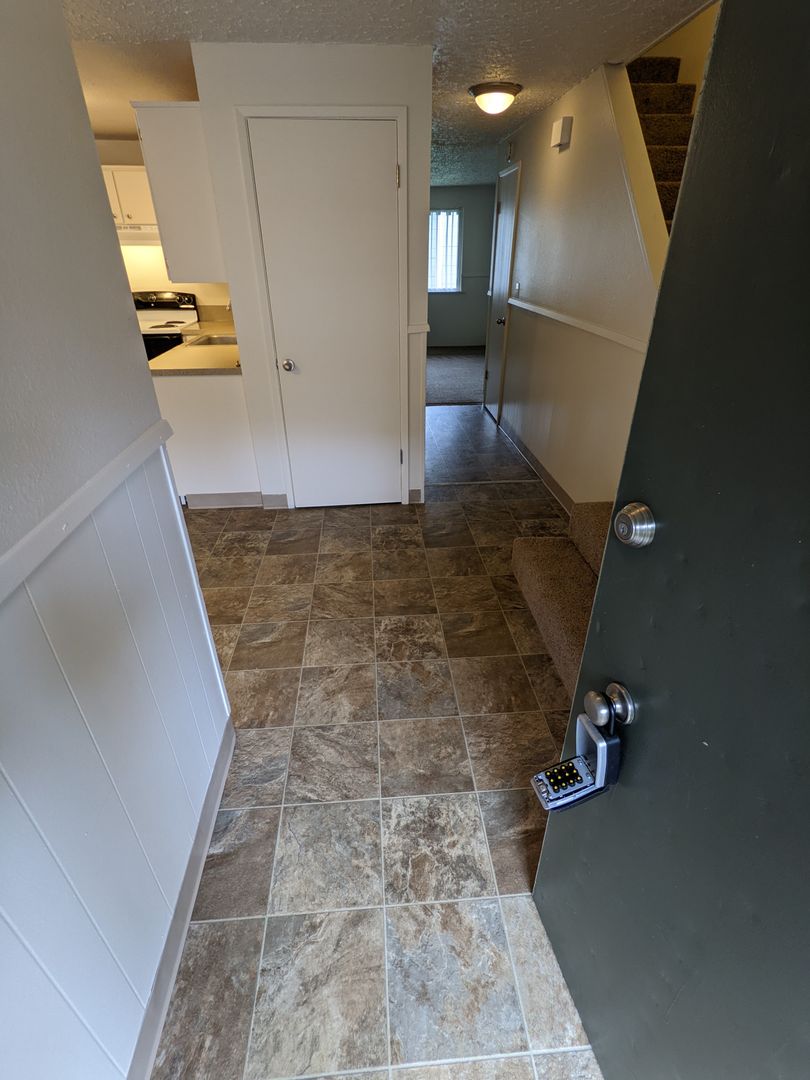 The townhome also includes a linen closet, pantry, coat closet, and hallway storage. A patio provides outdoor space, and off-street parking is available. The property is pet-friendly, with a $300 pet deposit and $25 pet rent. W/S/G is included in the rent. The location is convenient, with easy access to area highways and SR 500, and it's close to a bus line and shopping. The Royal Crest Townhomes offer a comfortable and convenient living experience. Apply today!