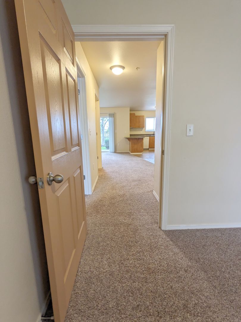 Enjoy the convenience of a stand-up shower, breakfast bar, bathtub, and large windows allowing for plenty of natural light. With carpet in the bedrooms, vanity lighting, and double closets in the primary bedroom, you'll have plenty of storage space. The apartment is located on the ground floor for easy access and is close to the bus line, area highways, shopping, and Chemeketa Community College, this apartment is perfect for those looking for a convenient and comfortable living space.