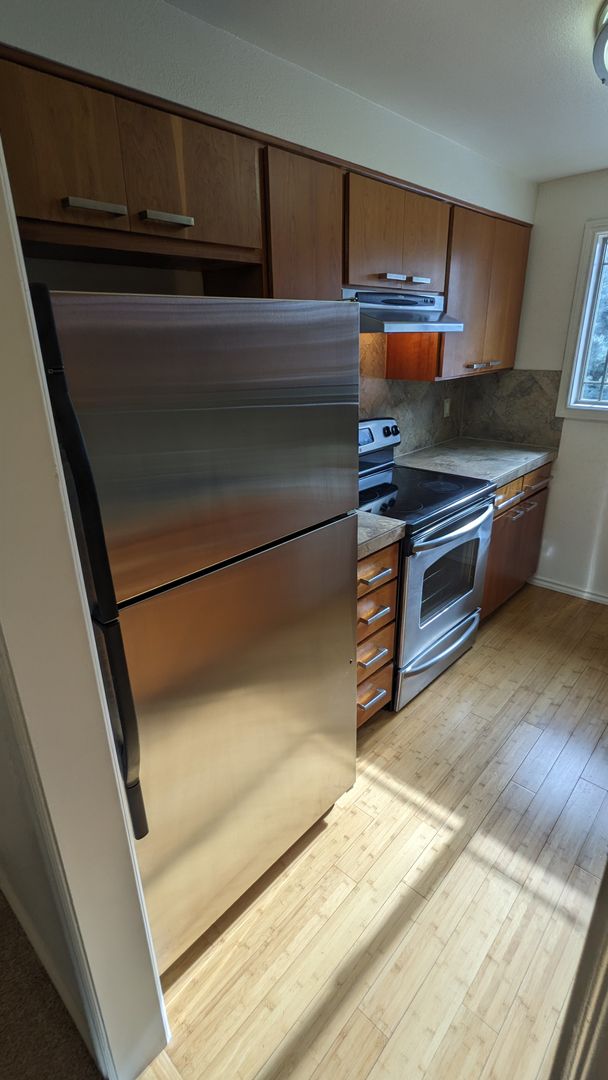 Welcome to Lancaster Condos in the suburban charm of West Linn, OR! This 2-bedroom, 1.5-bathroom condo boasts a large living area with large windows that allow for plenty of natural light. The kitchen is equipped with a dishwasher, a glass top range, and stainless-steel appliances, along with abundant cabinet space for all your storage needs.