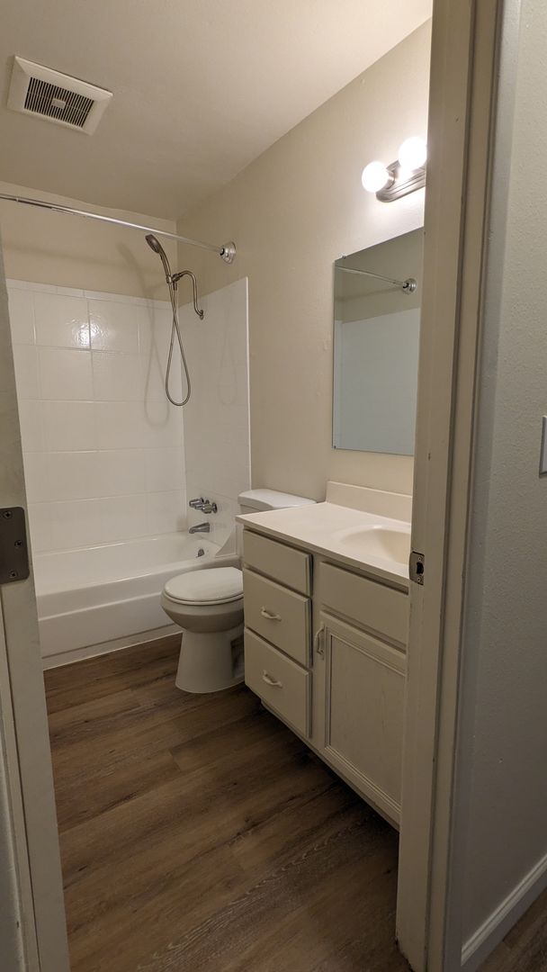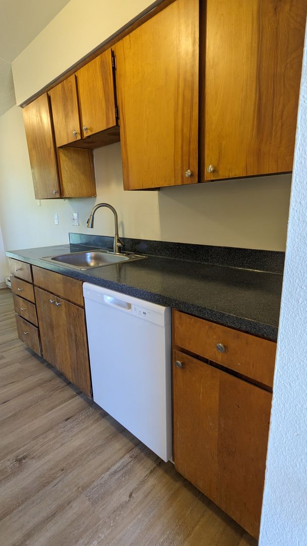 The kitchen is equipped with a dishwasher and garbage disposal, and boasts ample cabinet space for all your culinary needs. The bathroom features a bathtub, vanity lighting, and additional storage space. A $300 pet deposit is required, but there's no additional pet rent. The Meadows offers convenient onsite laundry facilities and guest parking.