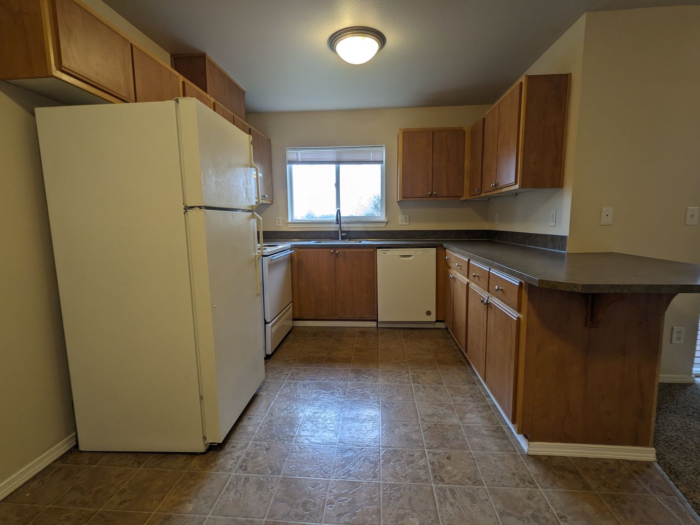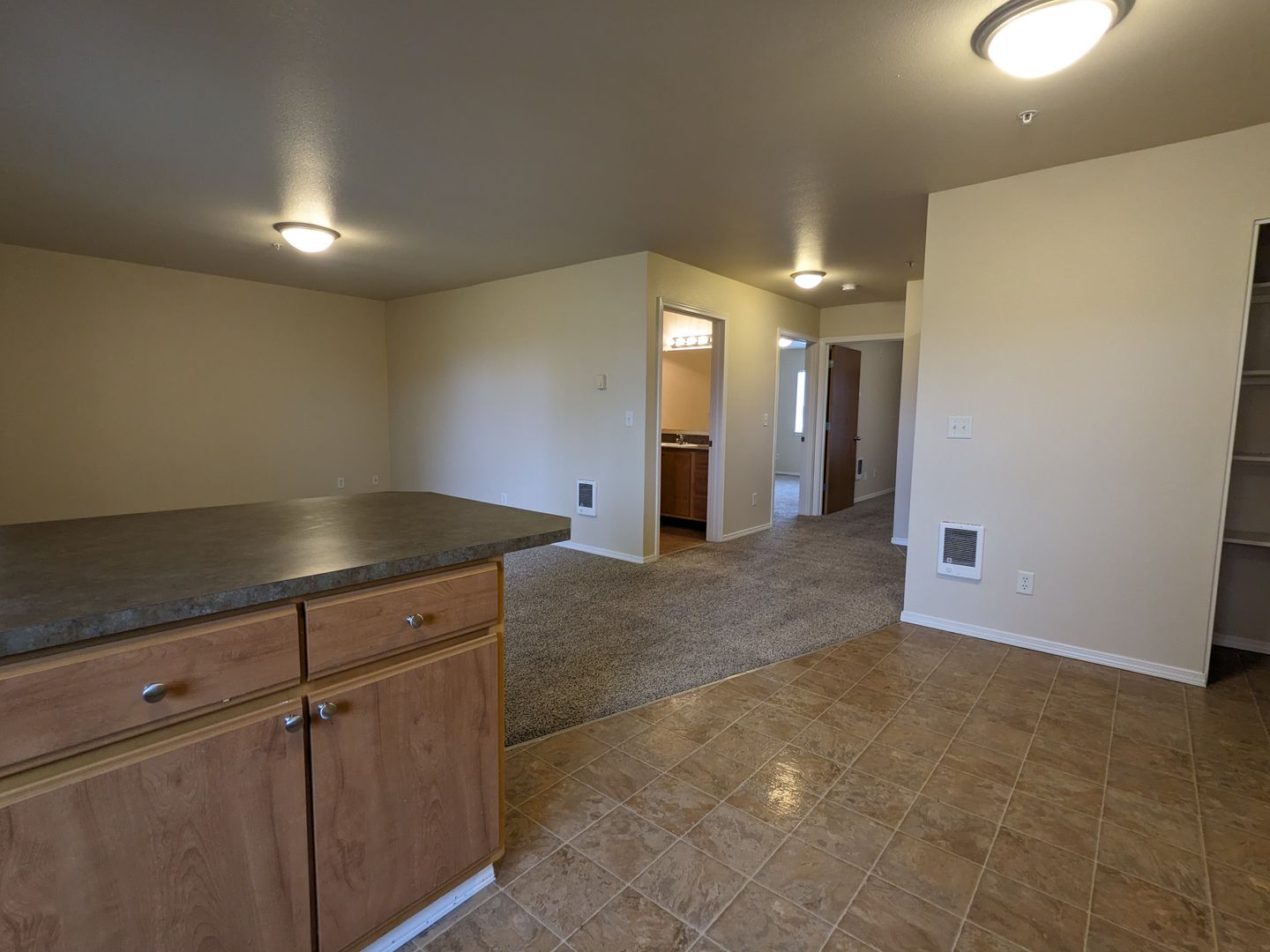 Welcome to Wellesley Park Apartments, your new home in Salem, OR. This 2-bedroom, 2-bathroom apartment is located on the 2nd floor, offering a spacious living area with large windows that let in plenty of natural light. The apartment features carpet and vinyl flooring, a dining area, and a breakfast bar for casual meals. The kitchen is equipped with a dishwasher and garbage disposal, and there's plenty of storage space with a pantry and abundant cabinets.