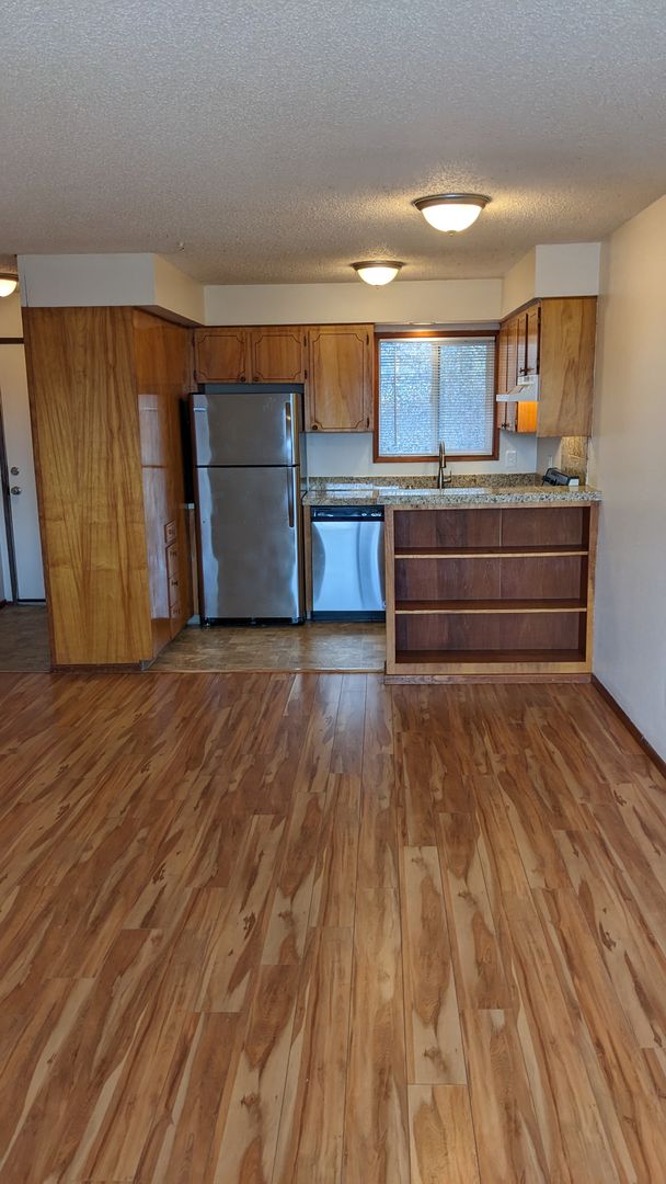 Welcome to Terrace View, a charming 1-bedroom, 1-bathroom apartment. This pet-friendly residence is perfect for those who value convenience and comfort. Featuring a large living area with large windows that allow for plenty of natural light, a breakfast bar for casual dining, and a coat closet and hall closet for extra storage. The kitchen is equipped with stainless steel appliances, a dishwasher, and abundant cabinet space, making meal prep a breeze. The bathroom boasts vanity lighting, a bathtub/shower combo, and additional storage space.
