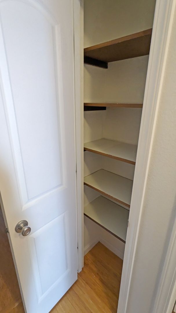 Additional features include a linen closet, pantry, coat closet, and a medicine cabinet for extra storage. The bathroom comes with a bathtub/shower combo and additional storage space. The unit also includes a ceiling fan and vanity lighting for added comfort and convenience. For pet owners, a $300 pet deposit and $25 pet rent apply, making this a pet-friendly environment.