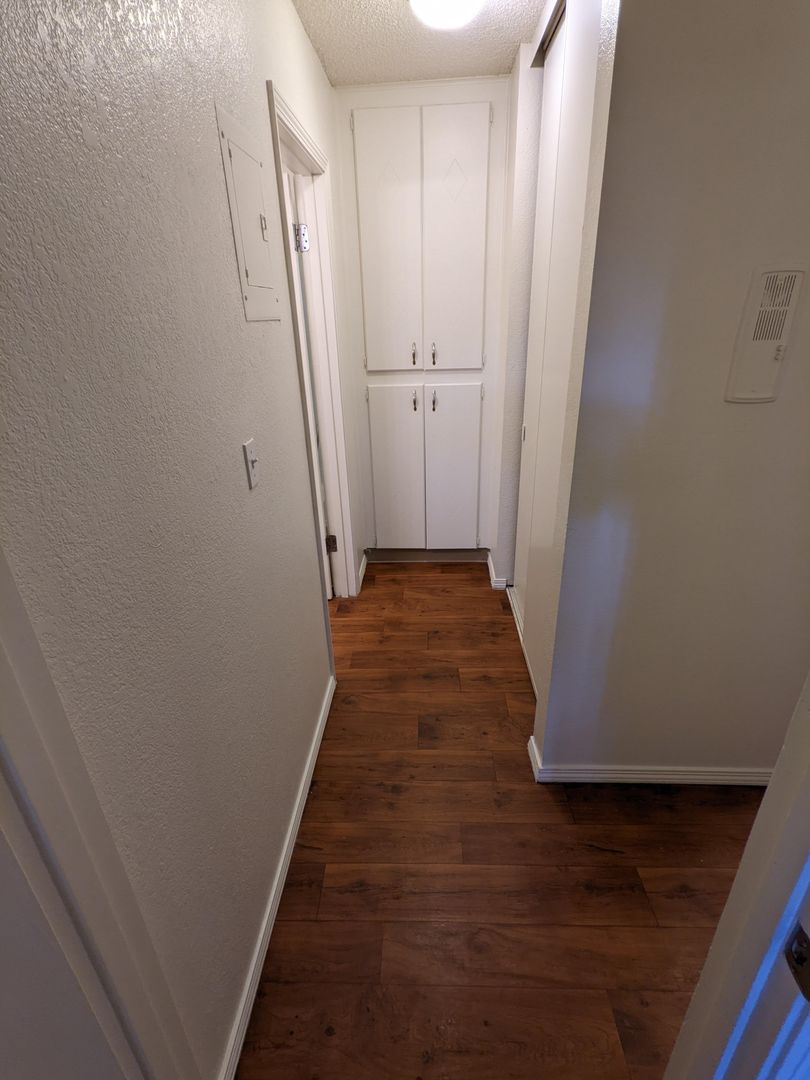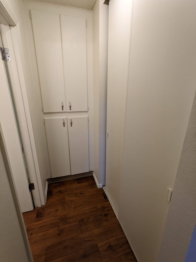 This cozy unit features a galley style kitchen with ample cabinet space, a dishwasher, and a bathtub for your convenience. Enjoy the privacy of a secured access building with onsite laundry and off-street parking. The apartment also boasts a linen closet, coat closet, and hall closet for all your storage needs.