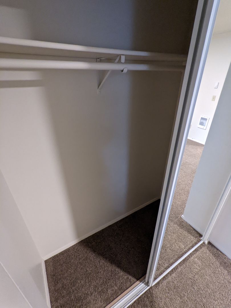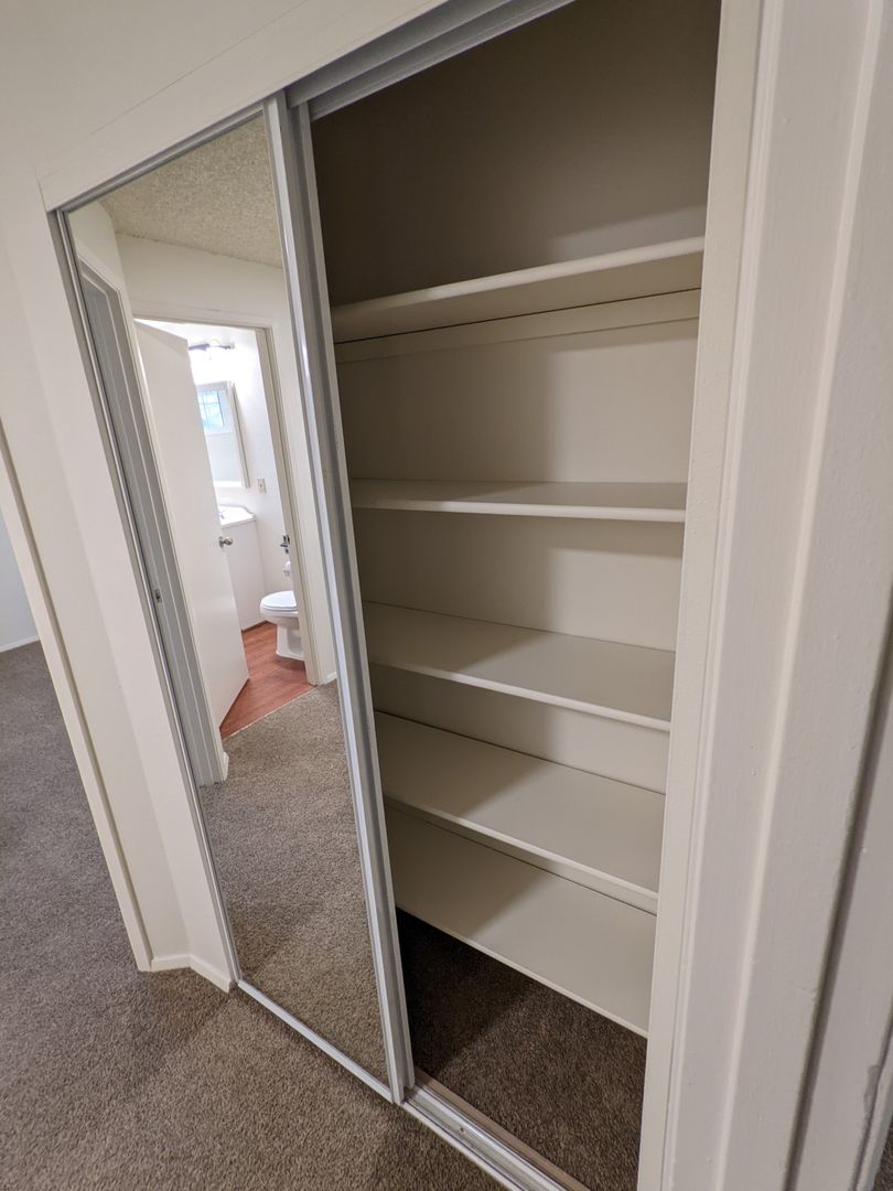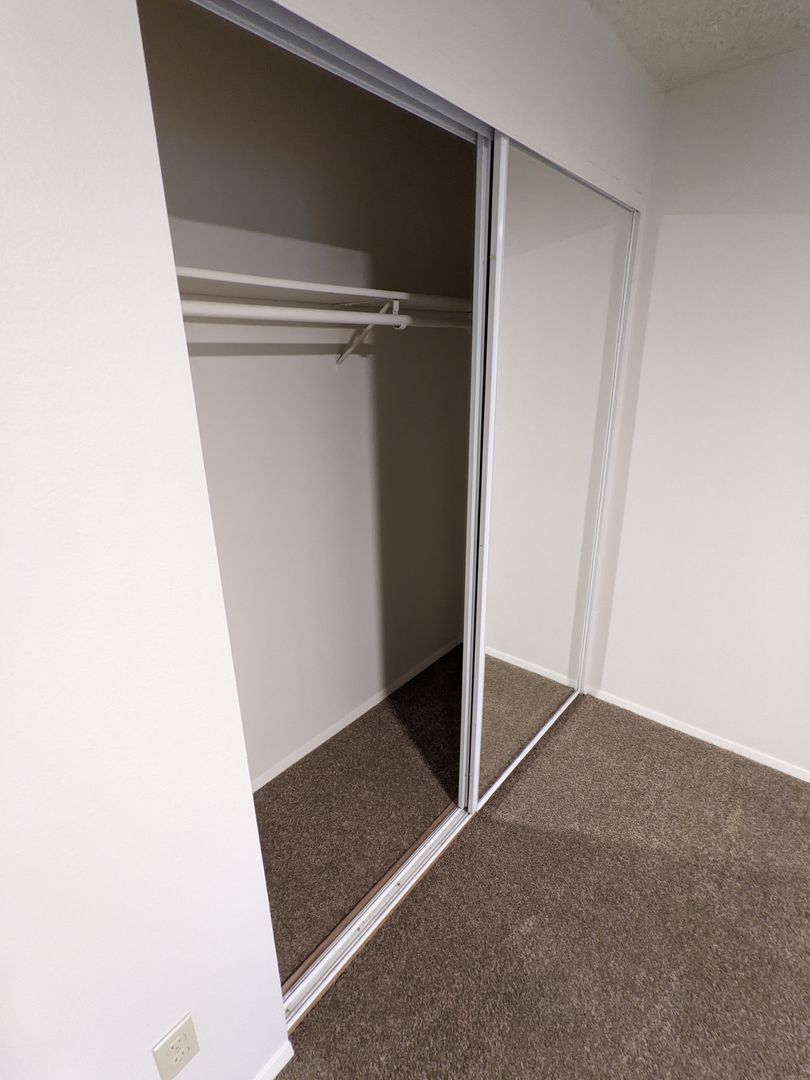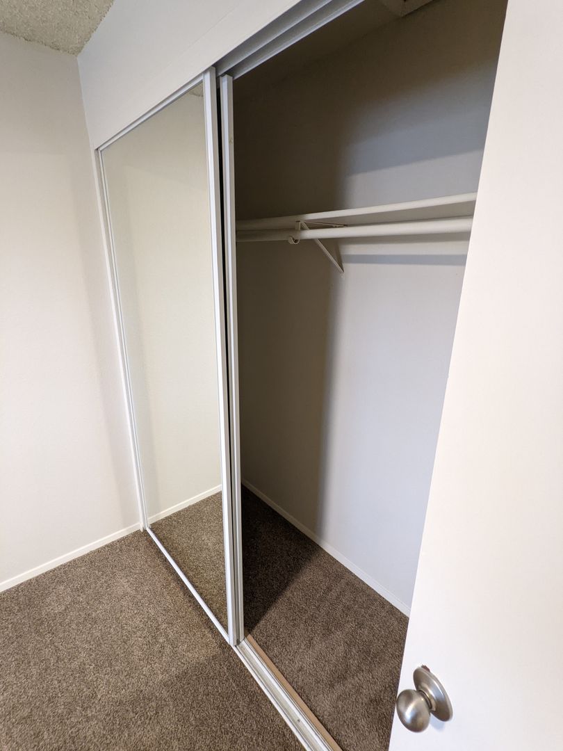 The primary bedroom offers double closets and mirrored closet doors, with additional linen and bathroom storage throughout. Enjoy a private fenced-in patio and optional outside storage; onsite laundry and off-street parking (2 cars max) add convenience.