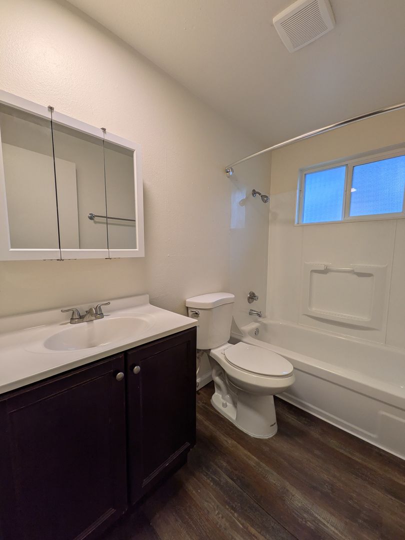 The bathroom includes a bathtub/shower and additional storage space. The apartment also boasts a linen closet and a coat closet for extra storage. For your convenience, there is onsite laundry and one off-street parking space, with additional street parking available for guests. Enjoy the outdoors with a private patio and shared greenspace.