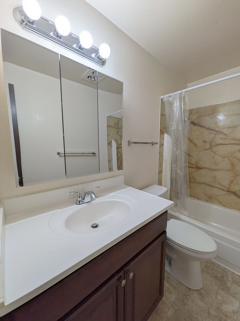 The kitchen is equipped with a refrigerator, stove, dishwasher, and ample cabinet space, along with a LARGE pantry for additional storage. The dining area provides a perfect setting for meals and gatherings. The bathroom comes with a bathtub/shower combo, a medicine cabinet, vanity lighting, and additional storage space.