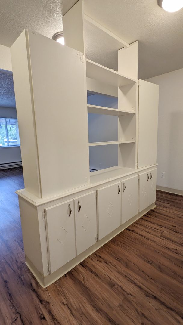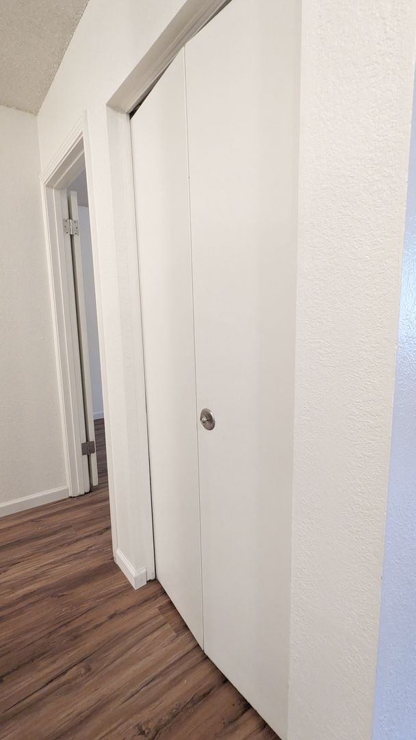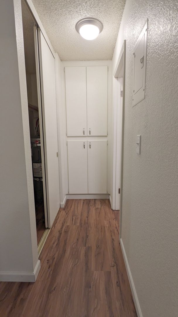 The bathroom comes with a bathtub/shower combo and additional storage space. Also included a linen closet, a coat closet, and a hall closet, providing ample storage throughout. The vanity lighting adds a touch of elegance to the space. For your convenience, the building offers secured access, onsite laundry, and off-street parking for up to 3 cars. A $300 pet deposit and $25 pet rent apply.