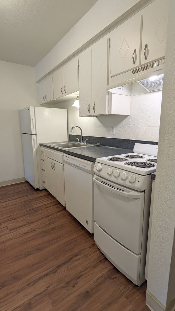 Welcome to The Mediterranean, a charming upstairs 1-bedroom, 1-bathroom apartment located in Beaverton. This pet-friendly unit offers a variety of amenities to enhance your living experience. The apartment features a galley-style kitchen equipped with a dishwasher and abundant cabinet space, perfect for those who love to cook.