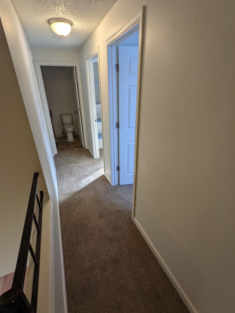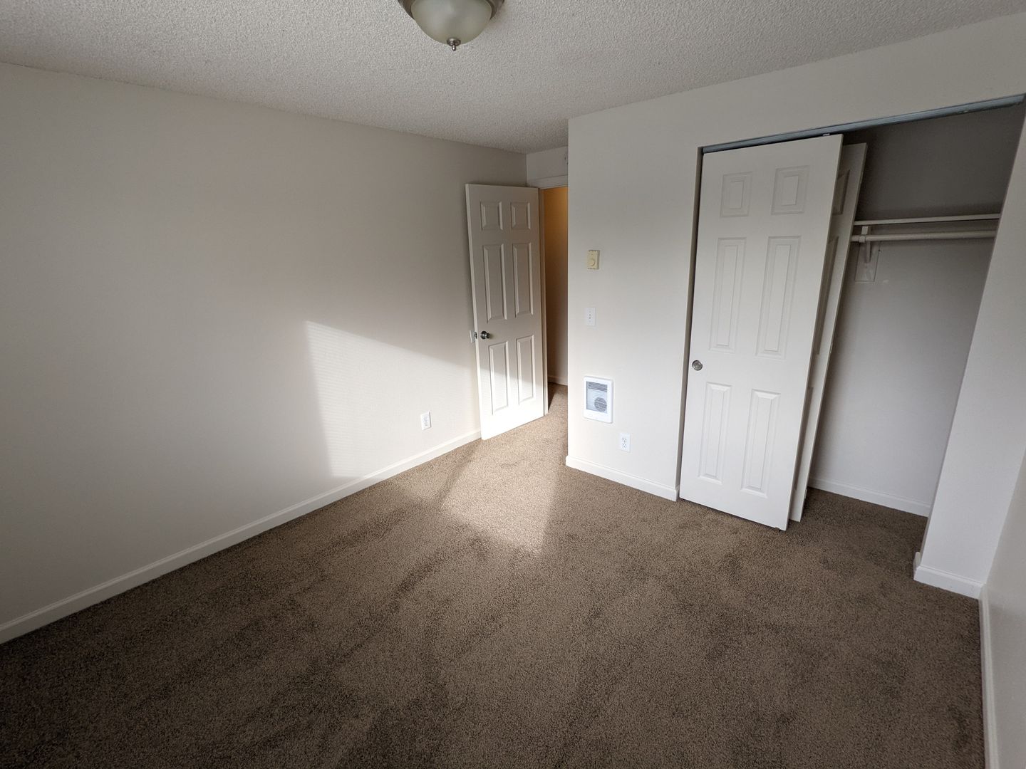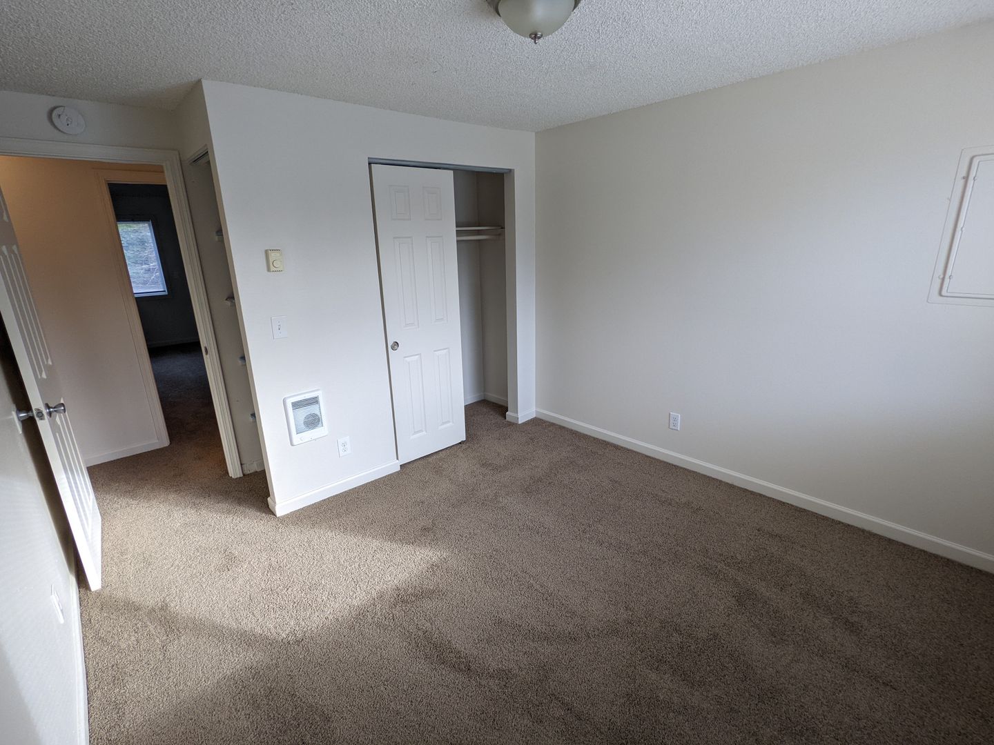 The bedrooms are carpeted and have large windows that let in plenty of natural light. The home also includes a linen closet and a coat closet, providing additional storage options. The duplex comes with W/D hookups and off-street parking, adding to your convenience. The property boasts two patios, one of which is fenced, providing a private outdoor space. There's also an outside storage area for your use.