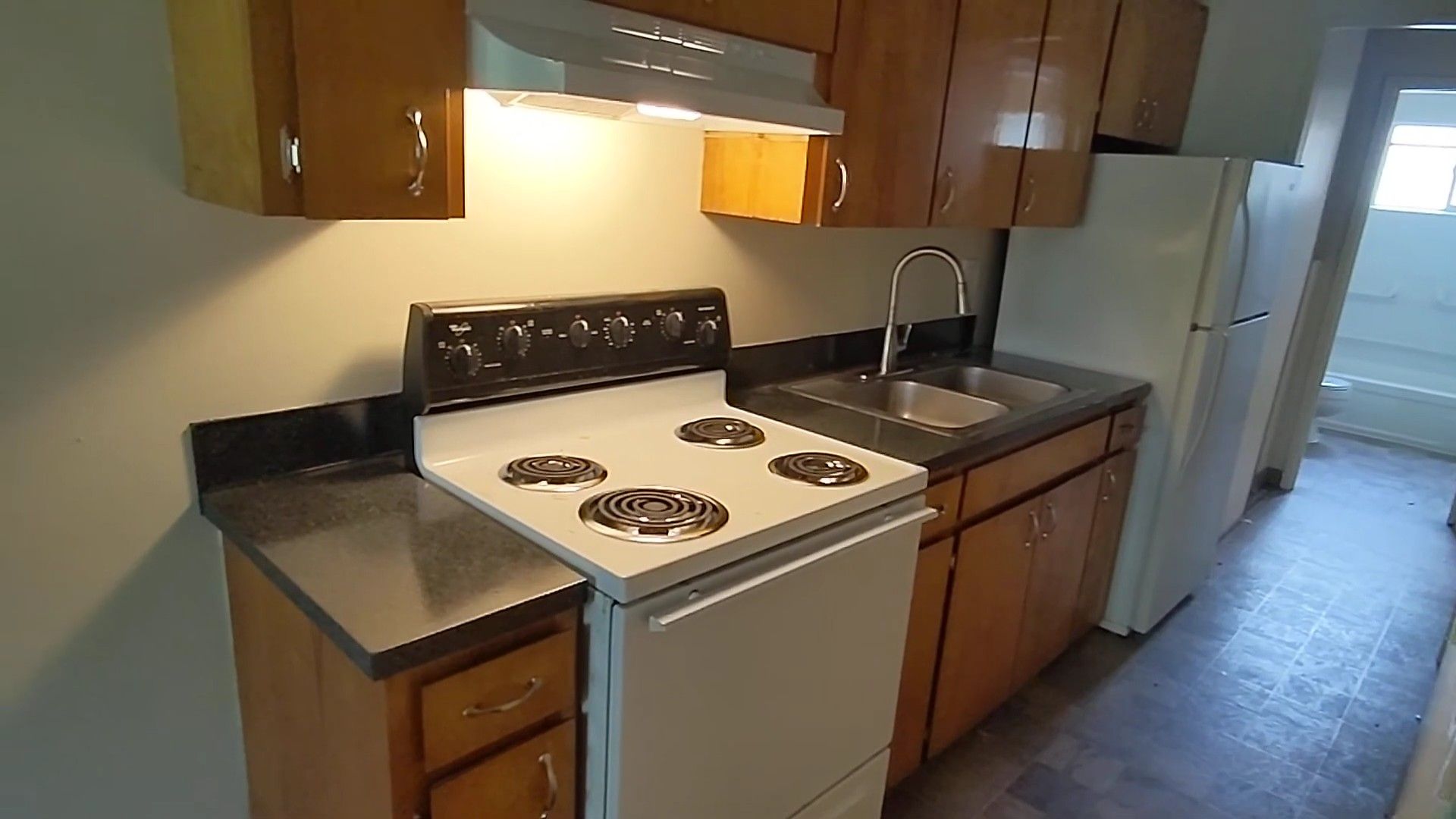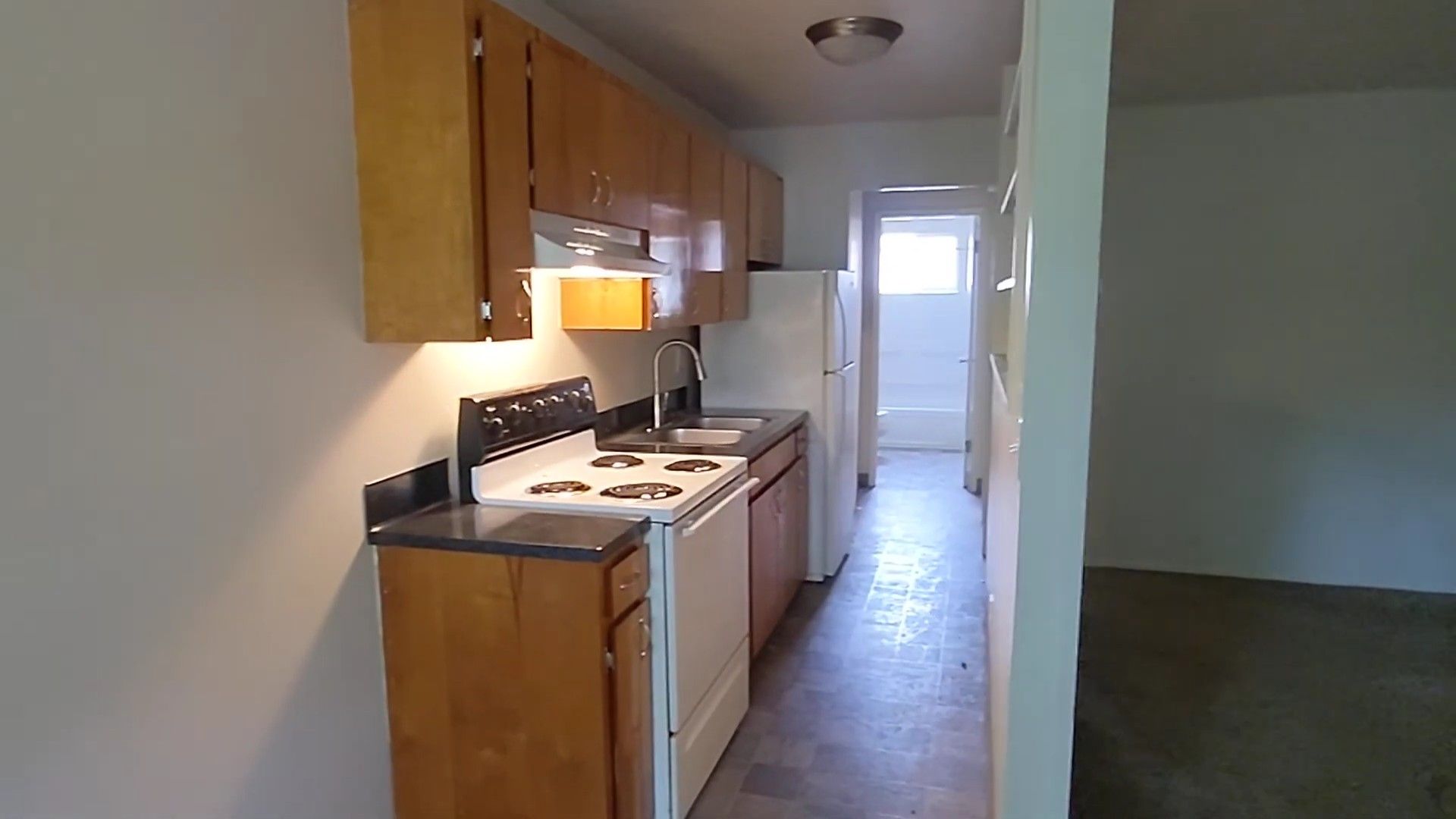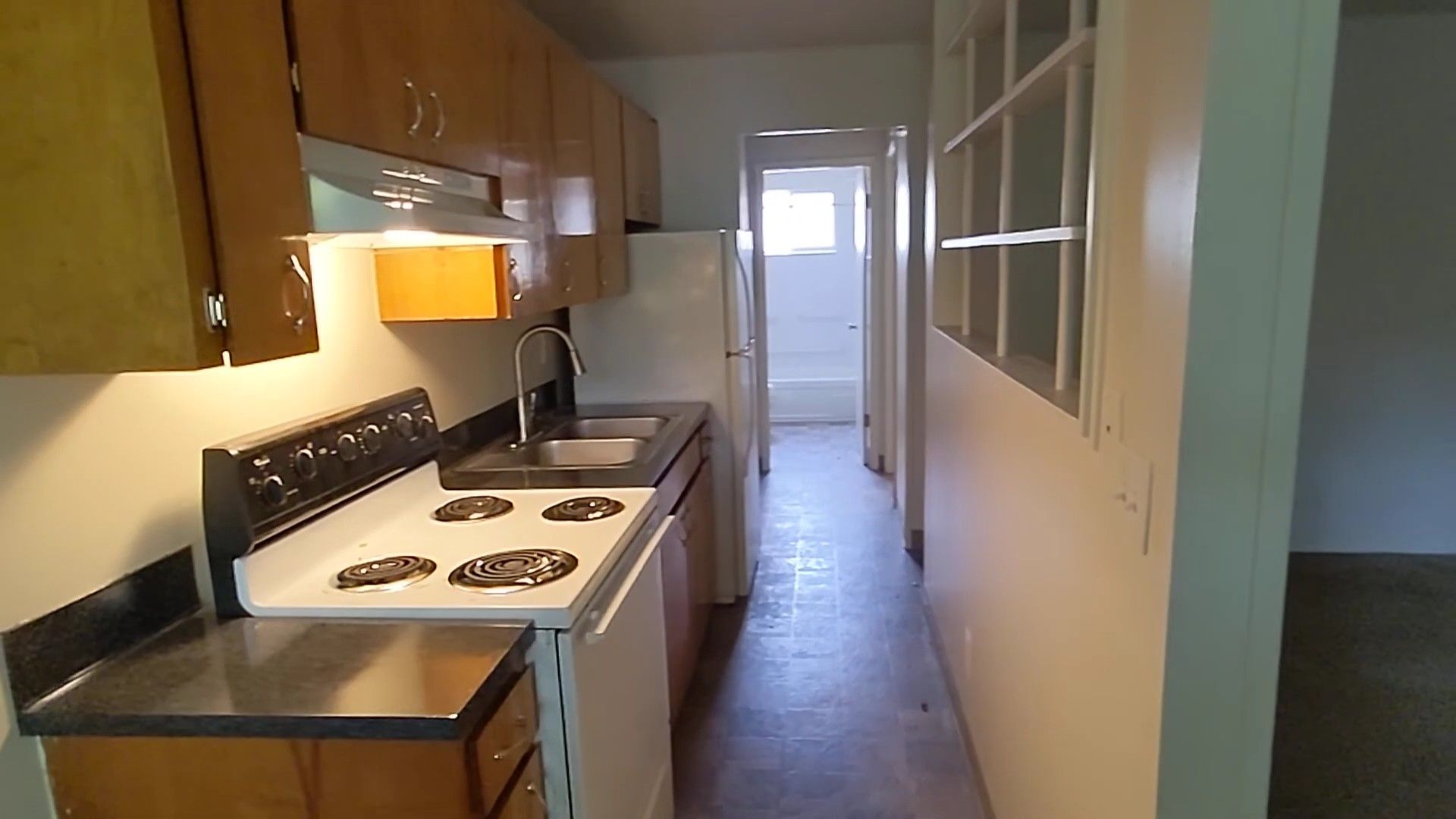 Welcome to West Slope Apartments. This ground floor, corner unit offers a spacious one-bedroom, one-bathroom layout. The apartment features a large living area, perfect for entertaining or relaxing, and a galley-style kitchen equipped with a double sink and abundant cabinet space for all your culinary needs.