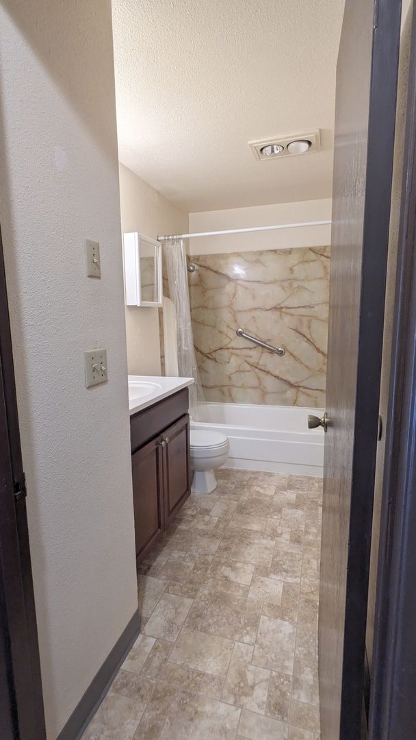 The apartment features a large living area with ample natural light from large windows, a separate dining room, and a large pantry. The kitchen is equipped with a dishwasher and abundant cabinet space, making meal prep a breeze. The bathroom offers a bathtub/shower combo, vanity lighting, a medicine cabinet, and additional storage space. Also included, a linen closet, a coat closet, and large closets in the bedrooms for all your storage needs.