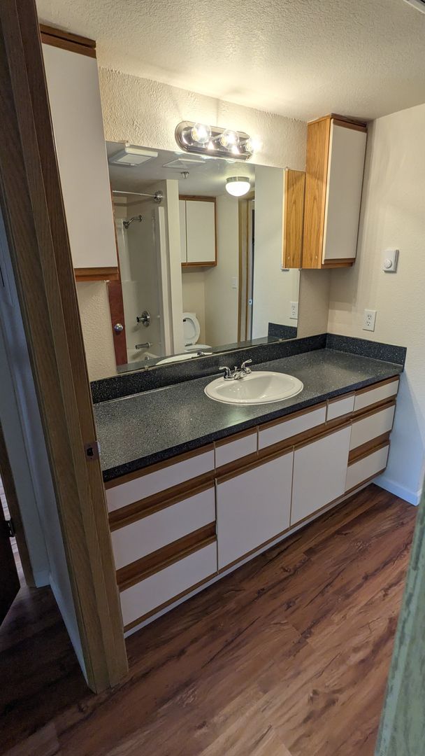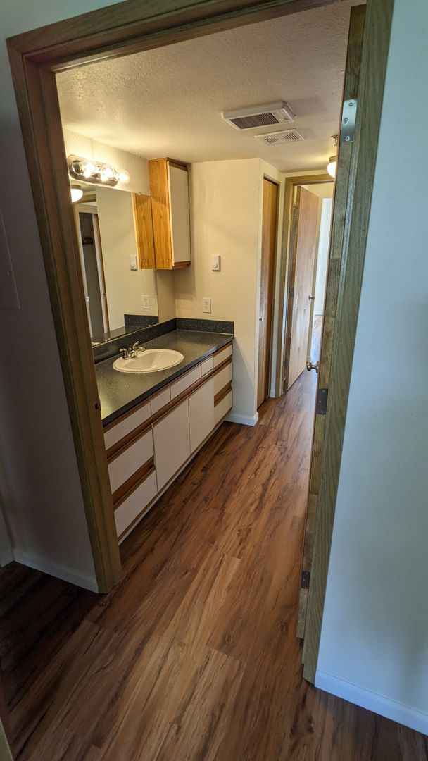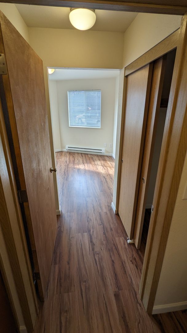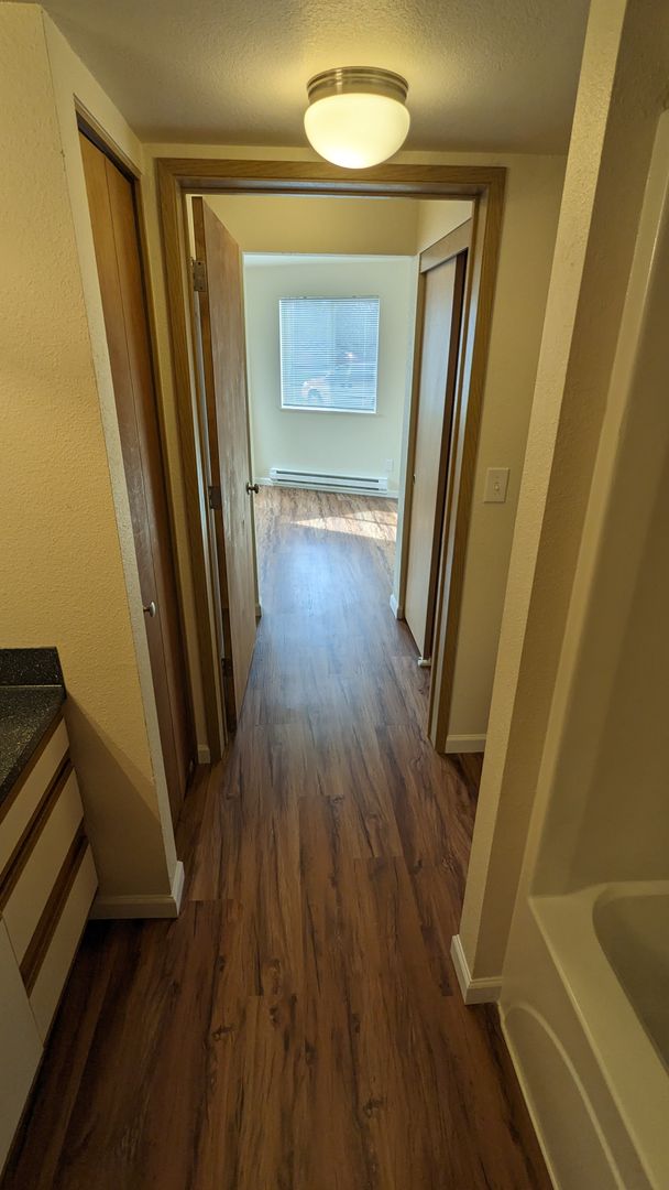 The unit features a dining area, a kitchen equipped with a dishwasher and double sink, and abundant cabinet space for all your culinary needs. The LVP flooring throughout adds a touch of elegance and is easy to maintain. Inside you will find a linen closet, a coat closet, and additional hallway and bathroom storage, ensuring you have plenty of space to keep your home organized. For your convenience, the building offers onsite laundry and the ability to pay rent and submit maintenance requests online.