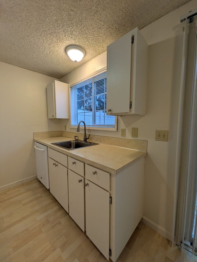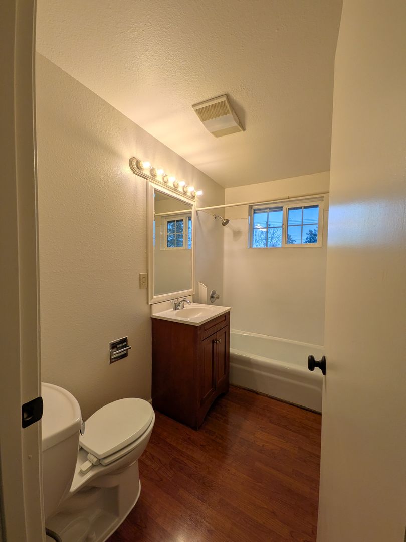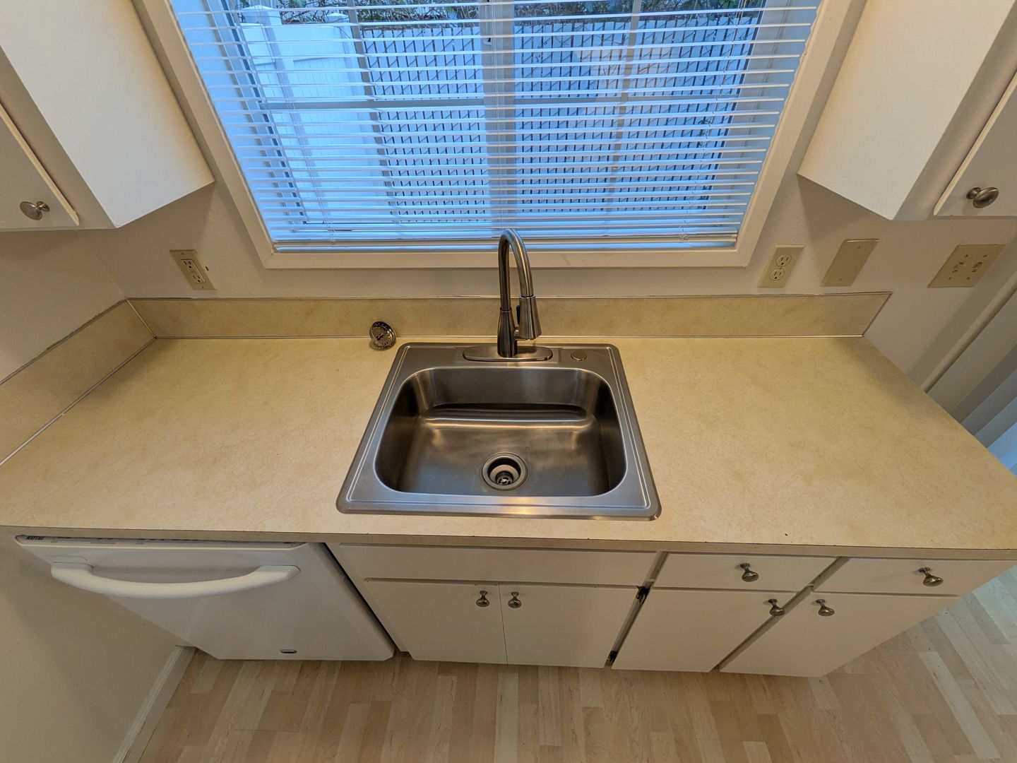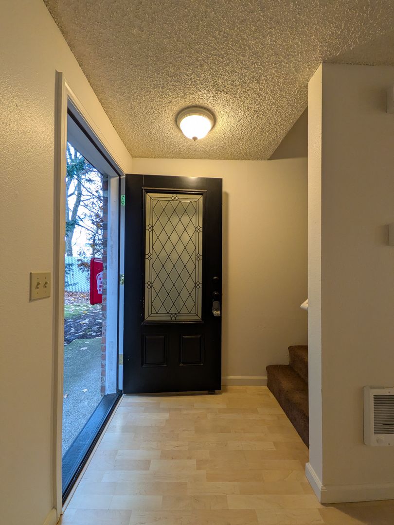 The home is filled with natural light, thanks to the large windows and the front door with decorative glass. The bathroom offers a bathtub/shower combo, vanity lighting, and plenty of storage. The home also features LVP flooring and abundant cabinet space in the kitchen.