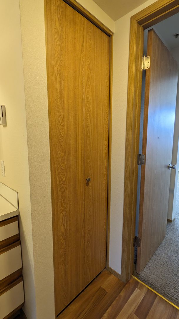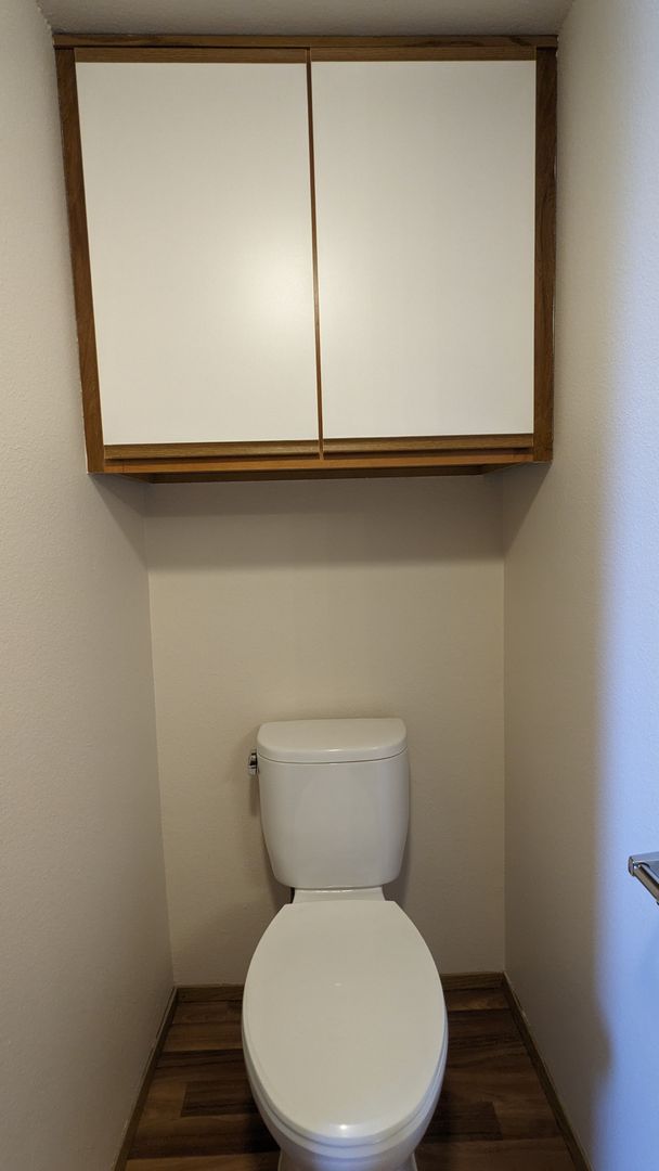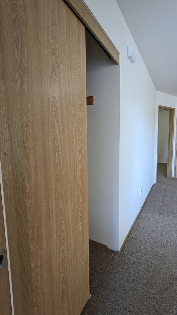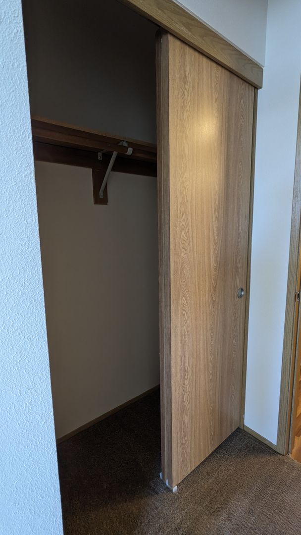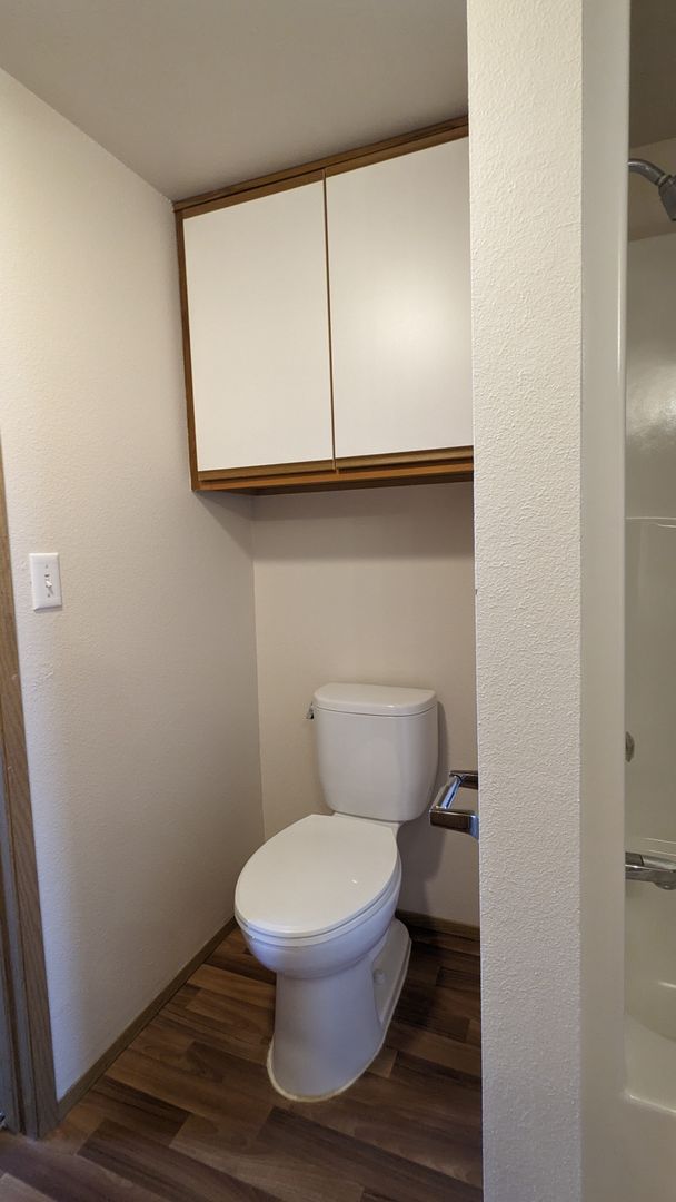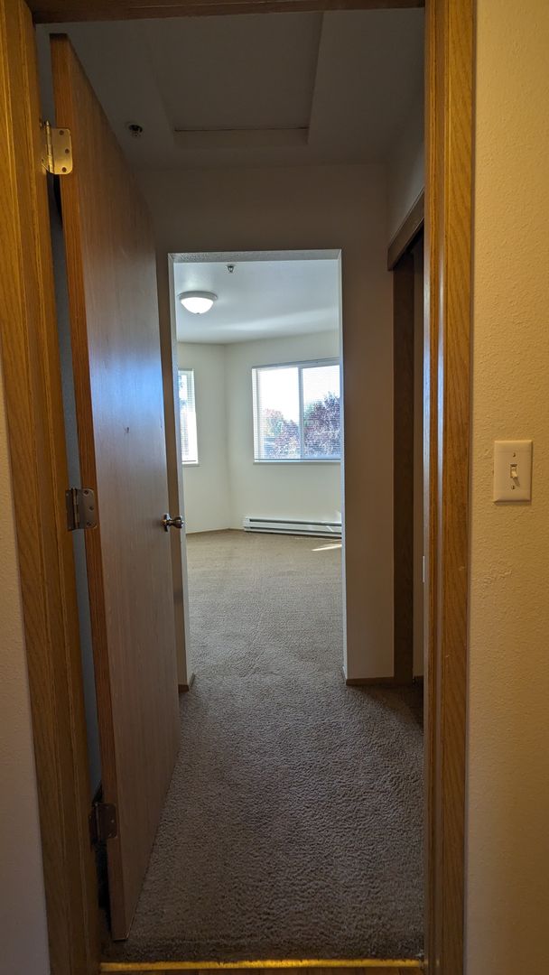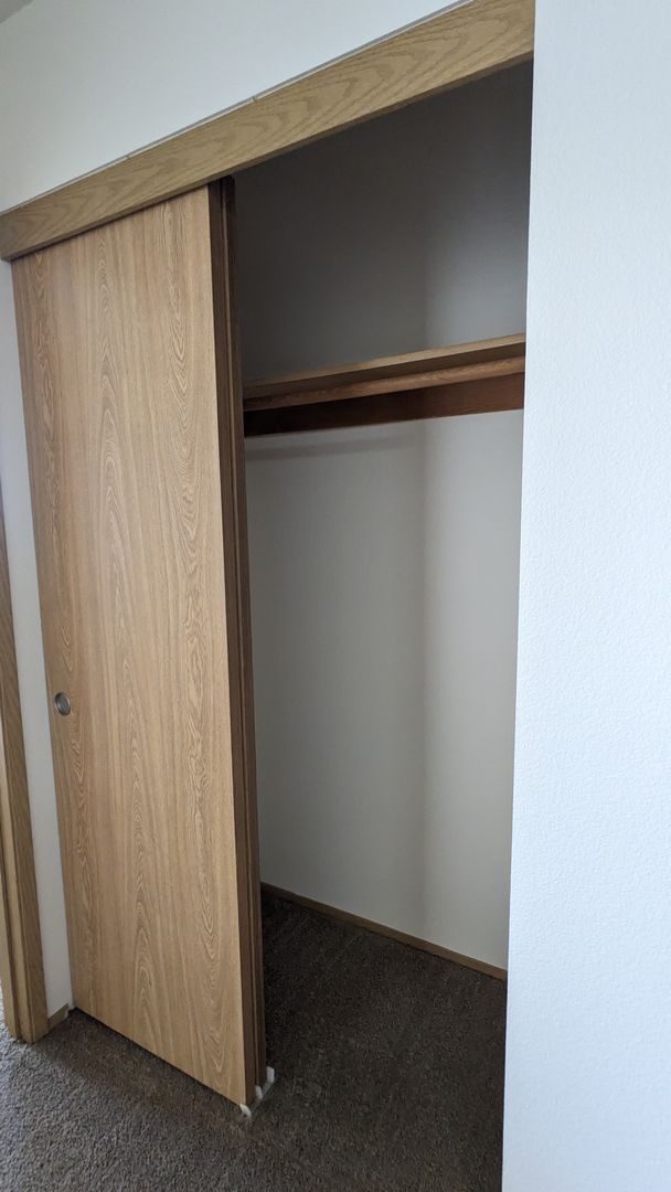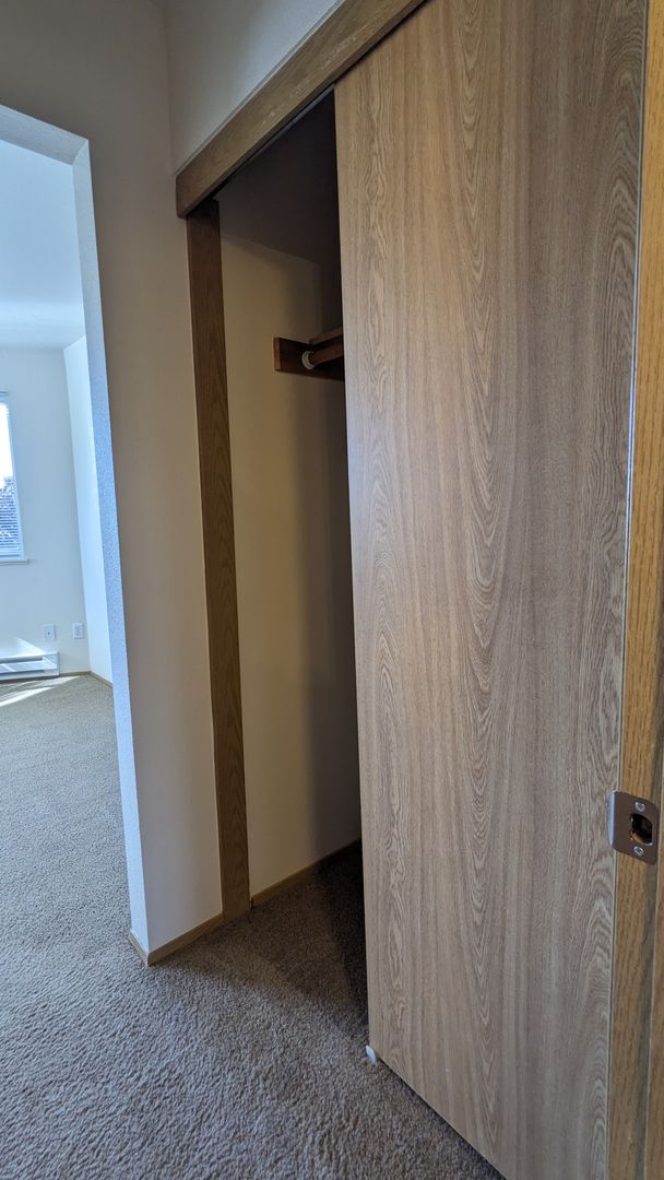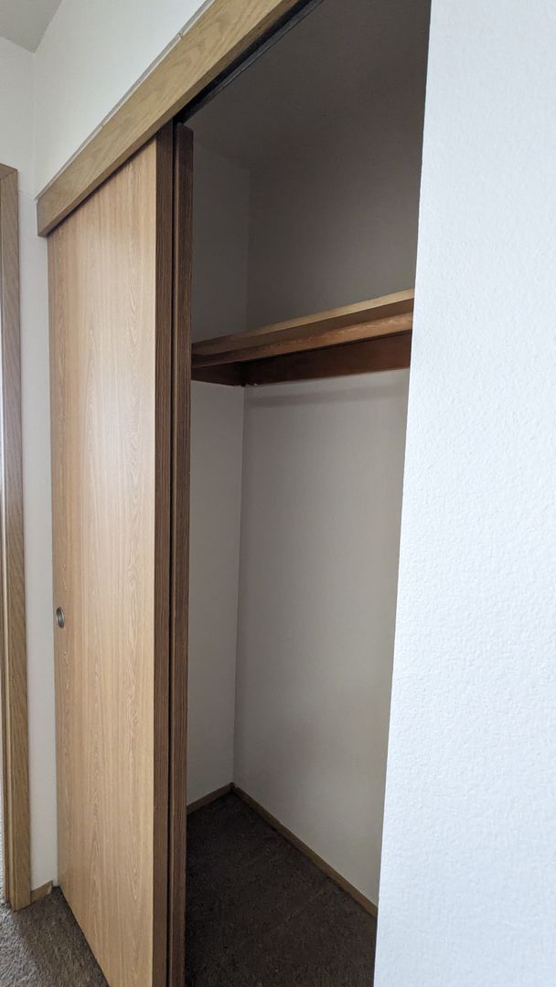 The bathroom features a bathtub, a medicine cabinet, vanity lighting, and additional storage space. Each bedroom comes with large closets, and there's even a linen closet and a coat closet for extra storage. Enjoy the outdoors from your private balcony or take advantage of the off-street and guest parking. The building is pet-friendly with no pet rent, just a $300 pet deposit.