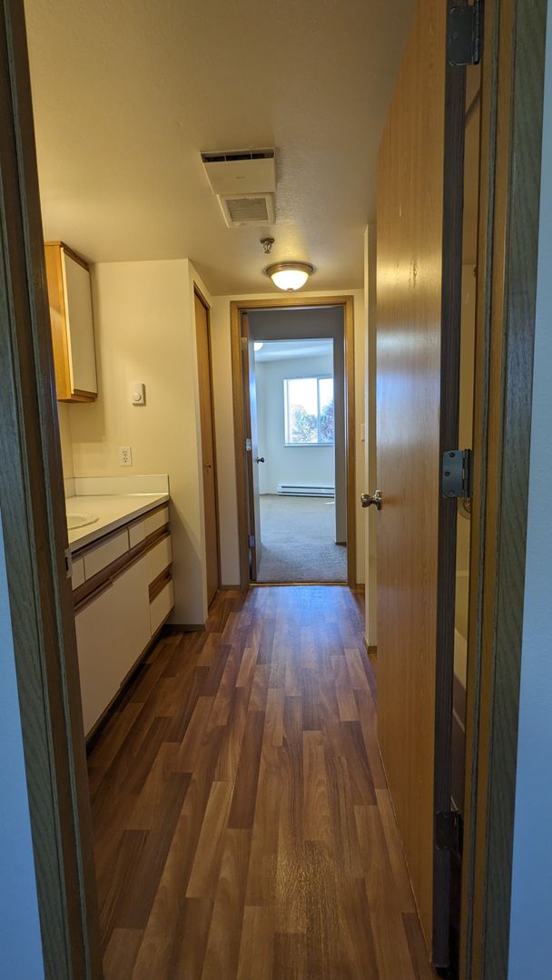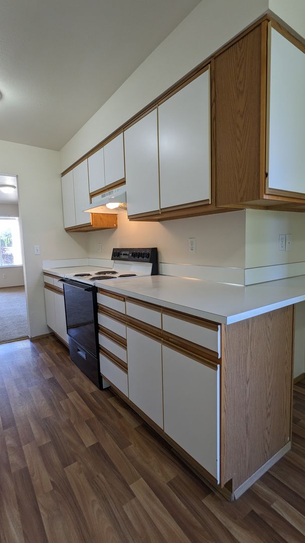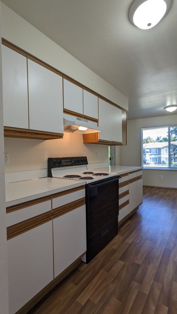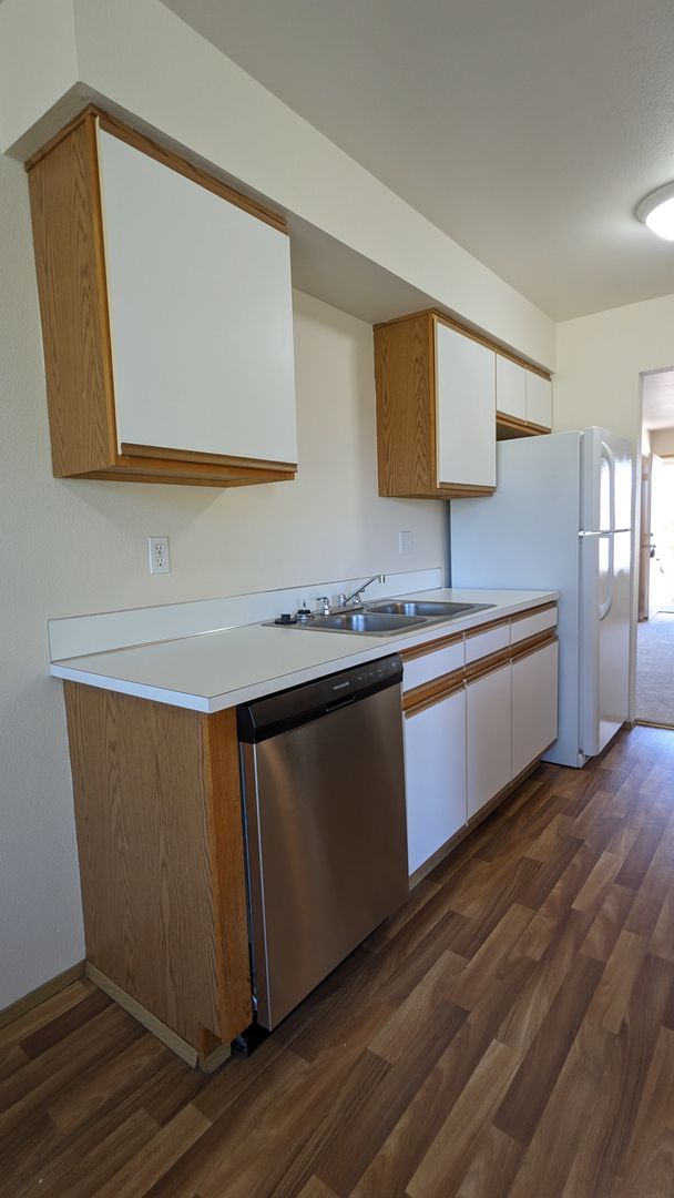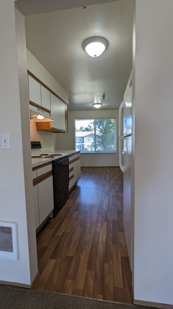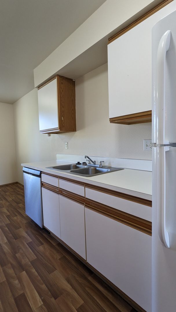 Welcome to Westview Apartments, your new home in the heart of McMinnville, OR. This upstairs 2-bedroom, 1-bathroom apartment is ready for your New Year move! The unit boasts a spacious living area, large windows that let in plenty of natural light, and LVP flooring throughout. The kitchen is equipped with a double sink and ample cabinet space, perfect for all your culinary needs. The dining area is ideal for hosting meals and gatherings.