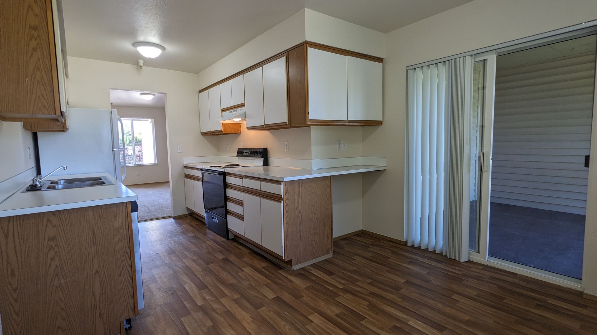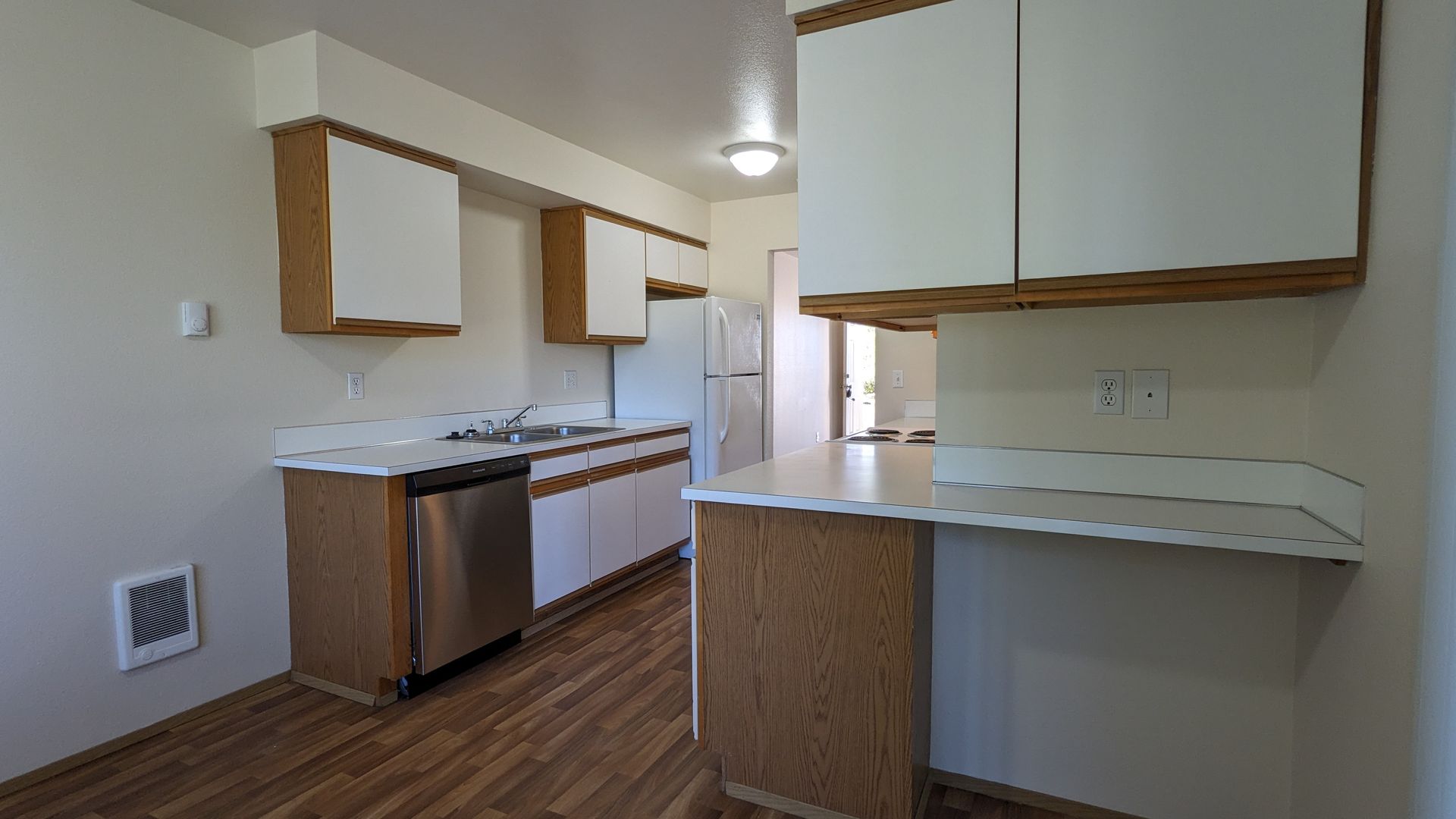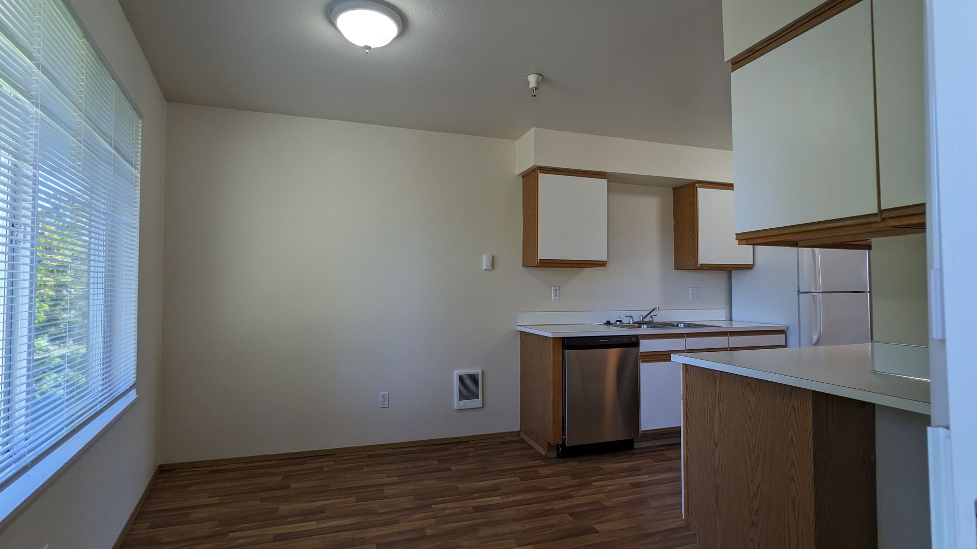 Welcome to Westview Apartments, your new home in the heart of McMinnville, OR. This upstairs 2-bedroom, 1-bathroom apartment is ready for your New Year move! The unit boasts a spacious living area, large windows that let in plenty of natural light, and LVP flooring throughout. The kitchen is equipped with a double sink and ample cabinet space, perfect for all your culinary needs. The dining area is ideal for hosting meals and gatherings.