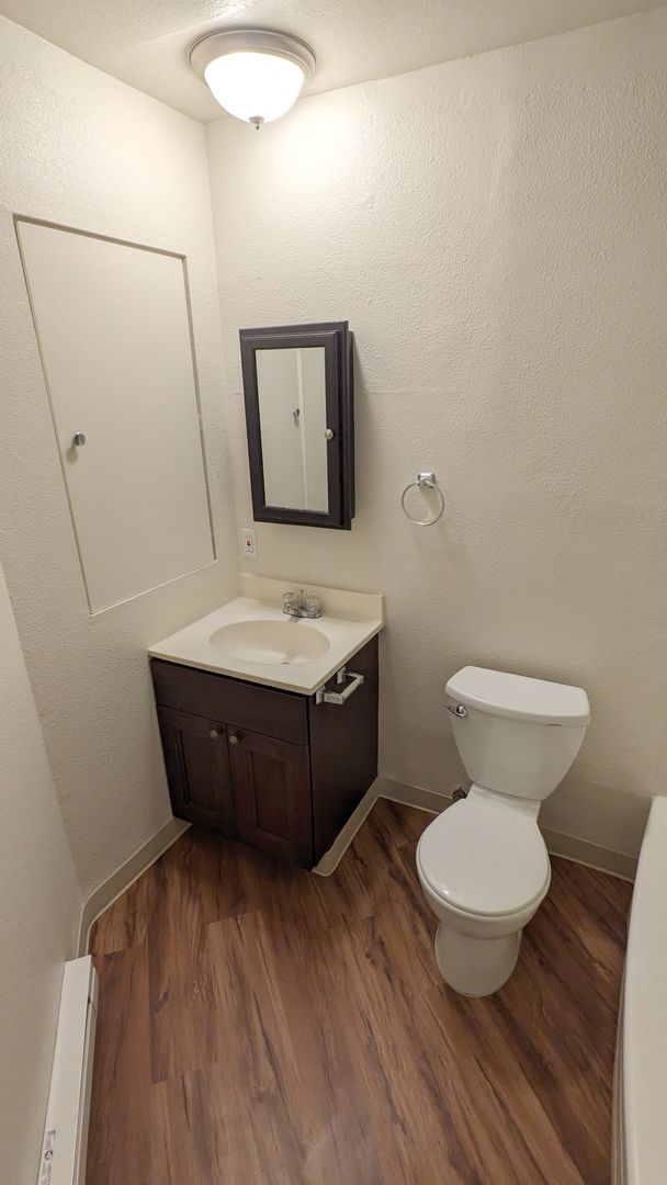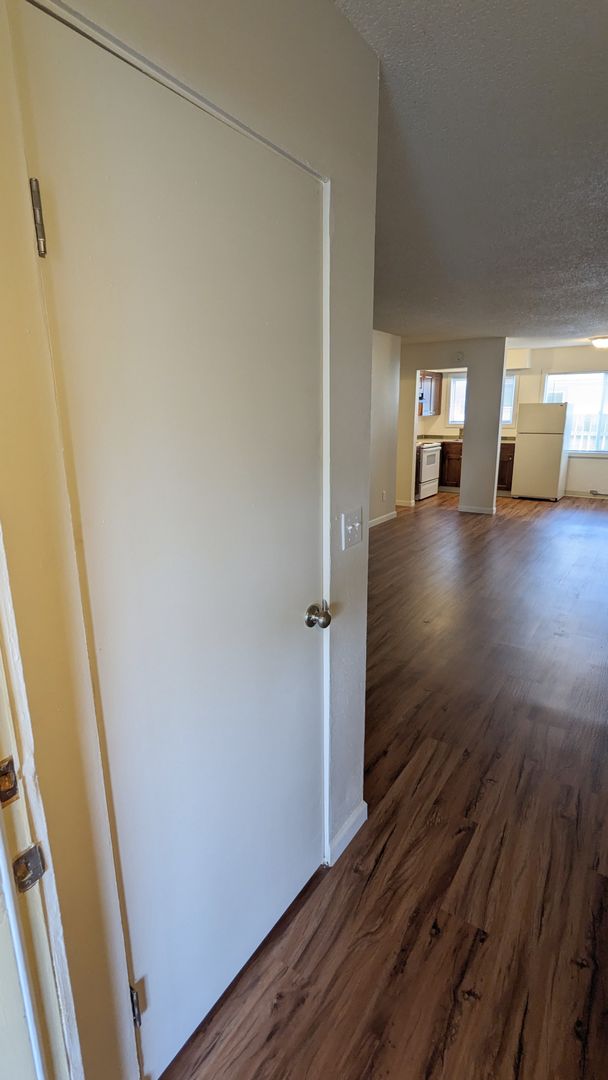 The bedroom features double closets, and the bathroom comes with a bathtub/shower combo and additional storage space. Also included, a linen closet and a coat closet. For your convenience, the property offers off-street parking and onsite laundry facilities. Pet lovers will appreciate our pet-friendly policy, with no pet rent and a reasonable $300 pet deposit.