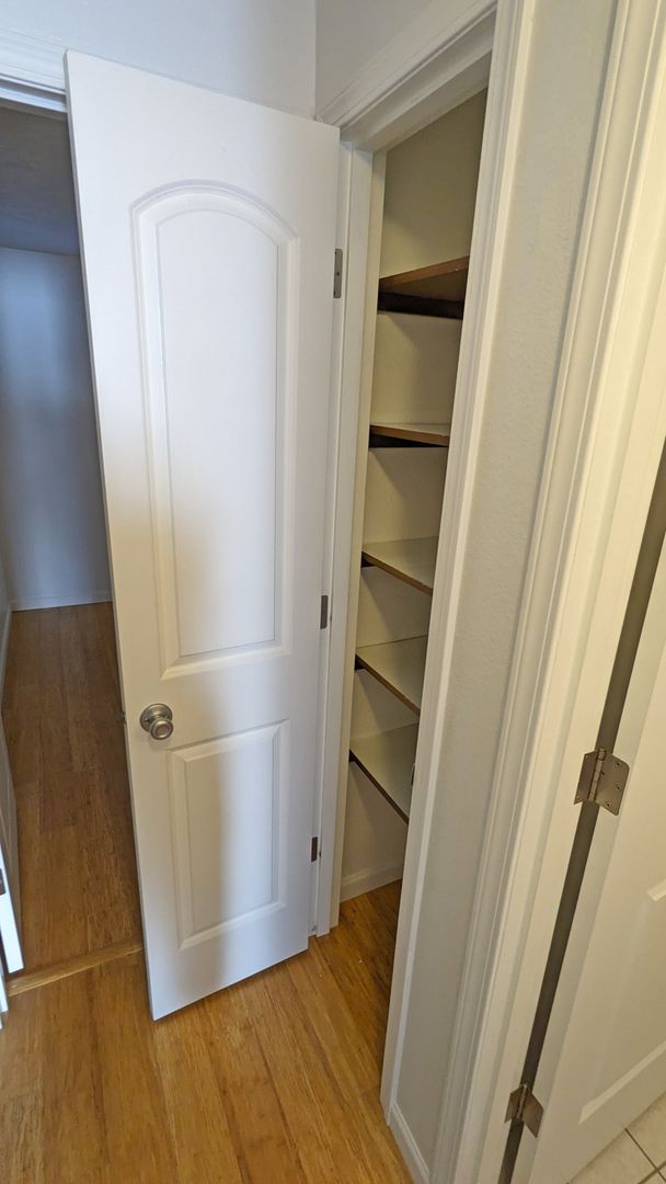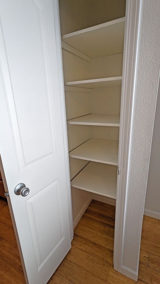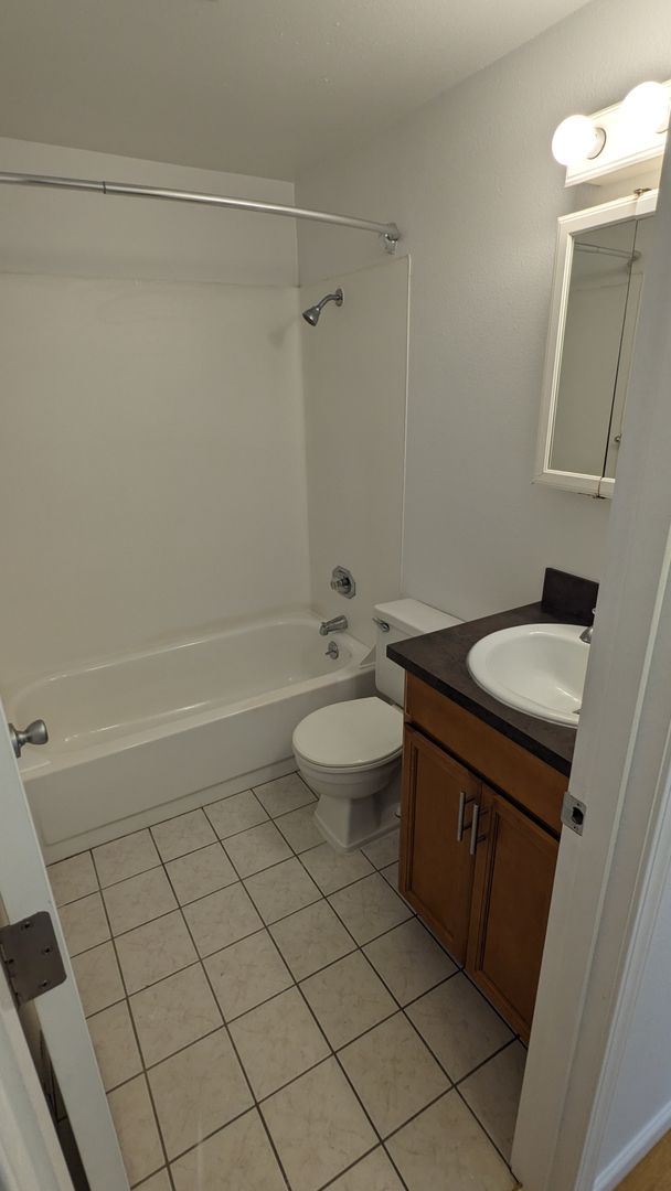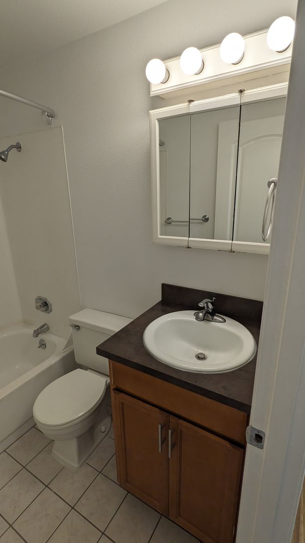 Additional features include a linen closet, pantry, coat closet, and a medicine cabinet for extra storage. The bathroom comes with a bathtub/shower combo and additional storage space. The unit also includes a ceiling fan and vanity lighting for added comfort and convenience. For pet owners, a $300 pet deposit and $25 pet rent apply, making this a pet-friendly environment.