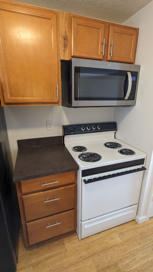 Welcome to StoneCrest Corner, a charming 2-bedroom, 1-bathroom upstairs corner unit with beautiful wood flooring and large windows that allow for an abundance of natural light. The spacious living area is perfect for entertaining, while the dining area provides a cozy space for meals. The kitchen is equipped with a dishwasher, microwave, and ample cabinet space, making meal prep a breeze.